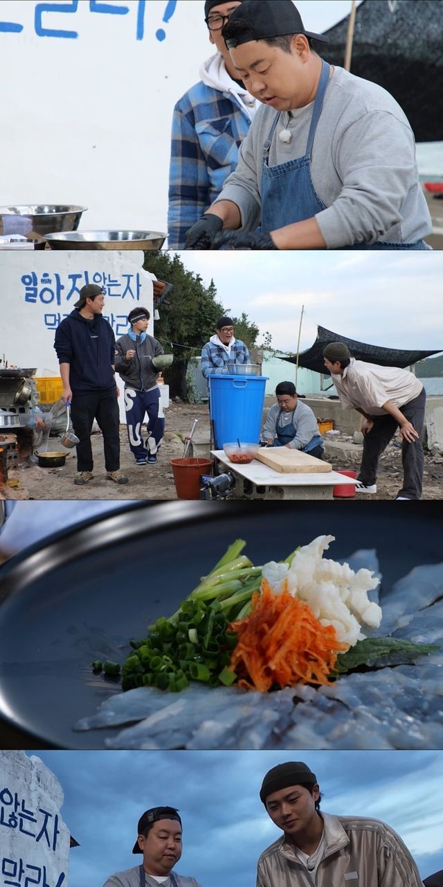 복어의 독이 든 부분을 제거하고, 이를 위해 사용했던 도구까지 다시 한번 깨끗하게 씻는 등 안전에 만반을 기하는 정호영. 평소에는 볼 수 없는 진귀한 풍경에 일꾼들은 그의 주변에 옹기종기 모여 질문 퍼레이드를 퍼붓는다. 특히 오상욱은 “상처 난 손으로 복어를 만지면 죽는 건가?”라며 호기심 가득한 질문으로 웃음을 자아낸다고 해 기대를 더한다.
