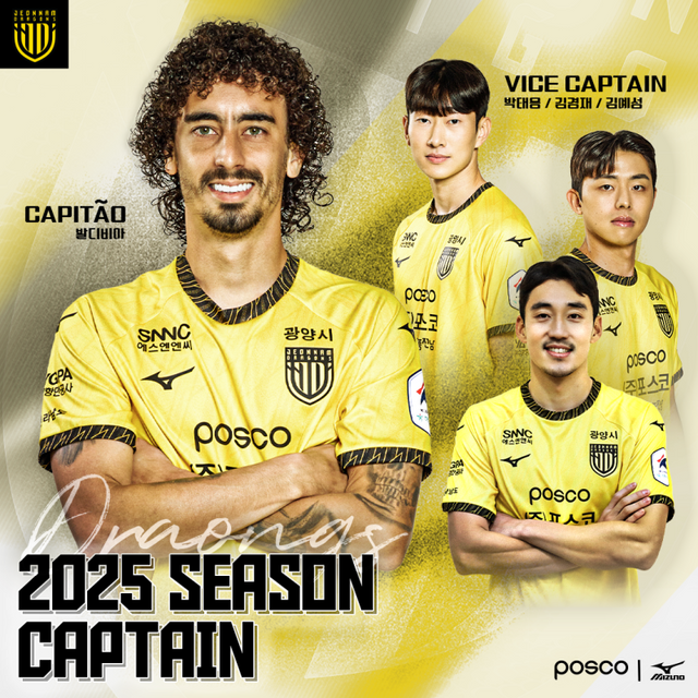 전남 구단은 20일 “2025시즌 주장으로 발디비아를, 부주장으로 김경재(32)와 김예성(29), 박태용(24)을 선임했다”며 “‘광양 예수’로 불릴 만큼 많은 사랑을 받고 있는 발디비아는 구단 역사상 첫 외국인 주장”이라고 밝혔다.