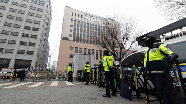 20일 오전 서울 마포구 서울서부지방법원이 윤석열 대통령 지지자들의 난입 사태로 경계가 강화되고 있다. 한편 윤석열 대통령의 구속영장 발부 직후 지지자들의 집단 난입과 폭력사태로 아수라장이 된 서울서부지방법원은 이날부터 정상운영에 들어간다 / 뉴스1