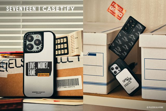 ‘SPILL THE FEELS’는 타이틀곡 ‘LOVE, MONEY, FAME’을 필두로 남모를 고민에 무력해진 이들이 자신의 감정을 솔직하게 쏟아내며 더 나은 미래로 나아갈 수 있기를 바라는 세븐틴의 응원을 담은 앨범인데요. 케이스티파이와의 협업 컬렉션 디자인에도 3가지 버전의 앨범 아트워크를 활용해 세븐틴 특유의 긍정적인 무드와 사랑의 메시지를 녹였죠. 또한 스트리트 감성의 웨어러블한 디자인의 제품들도 만나볼 수 있습니다.