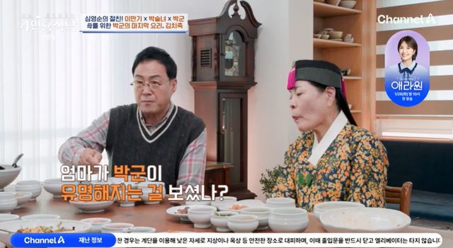 더불어 박군은 어머니와의 추억이 담긴 요리를 해준 심영순에게 고마움을 전하기도. 그러자 심영순은 "세상에 젊은이가 이렇게 효자고 세상을 먼저 읽고 요리 자격증을 따고"라며 다독였다.
