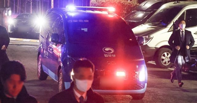 내란 우두머리 혐의로 체포된 윤석열 대통령의 구속 전 피의자심문(영장실질심사)이 종료된 지난 18일 서울 마포구 서울서부지법 인근에서 윤 대통령이 탄 법무부 호송차량이 서울구치소로 향하고 있다. /공동취재-연합뉴스