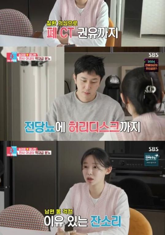 김나현은 슬리피에게 "폐 질환 의심으로 폐 CT까지 찍어보라고 했었는데, 담배를 피우면 어떡하냐"고 했고, 모두가 슬리피의 건강을 걱정했다. 슬리피는 대장 용종 2개 제거, 전당뇨에 허리니스크까지 있다고.