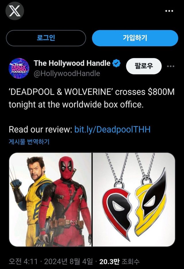 오늘 월드와이드 8억불 돌파 ㄷㄷ