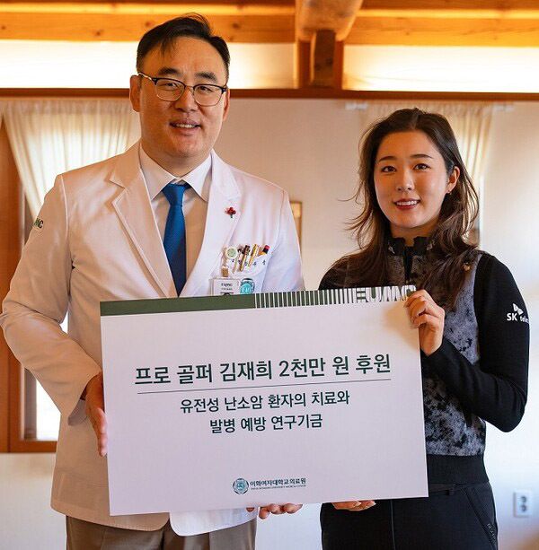 한국여자프로골프(KLPGA) 투어서 활약 중인 김재희가 이화여자대학교 의료원에 유전성 난소암 치료 연구기금으로 2000만원을 기부했다. 지난 10일 이대서울병원 내 보구녀관서 진행된 기부금 전달식에는 병원 관계자와 김재희 등이 참석했다.