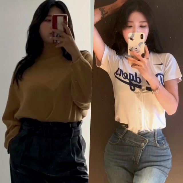 공개된 사진 속 다이어트 전 최준희는 블랙 팬츠에 베이지톤의 상의를 입고 있는 모습이다. 다이어트 후 청바지에 심플한 화이트 상의를 넣어서 입고, 버클을 겹쳐 채웠음에도 헐렁한 느낌의 충격적 개미허리를 보여주고 있어 놀라움을 더한다.