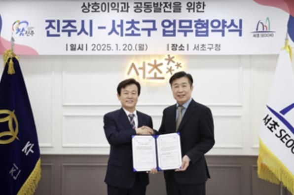 [파이낸셜경제=김영란 기자] 서울 서초구는 지난 20일 서초구청에서 경상남도 진주시와 업무협약(MOU)를 맺고 문화·예술·정원·산업·경제 등의 분야에서 상호 교류 및 협력 의지를 다졌다고 밝혔다.