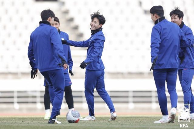 대한민국 축구 국가대표팀 정호연이 지난해 3월 19일 고양종합운동장에서 2026 북중미 월드컵 아시아 2차 예선 태국전을 앞두고 진행된 비공개 훈련에서 훈련을 하고 있다 / 뉴스1(대한축구협회 제공)