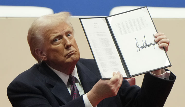 트럼프 대통령은 그간 '바이든 대통령 4년'을 신속하게 되돌리겠다고 공언한 바 있다. 이날 서명은 캐피털 원 아레나에서 2만 관중이 모인 가운데 이뤄졌다.