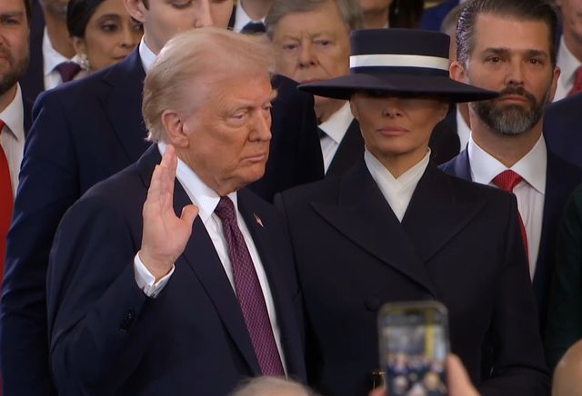 취임 선서하는 도널드 트럼프 대통령. 오른쪽 모자를 쓴 이는 부인인 멜라니아 트럼프 여사. /도널드 트럼프 페이스북 영상 캡처