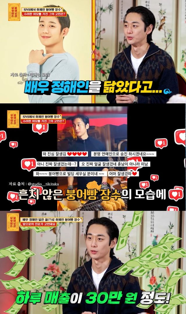 20일 KBS JOY '무엇이든 물어보살'에 4,000만 뷰의 사나이, 정해인 닮은꼴 붕어빵 사장님이 등장했다. 그는 프리랜서 모델 및 카페 사장으로 일하고 있으며, 지난해 겨울부터 붕어빵 장사를 시작했다면서 자신이 'N잡러'임을 밝혔다.