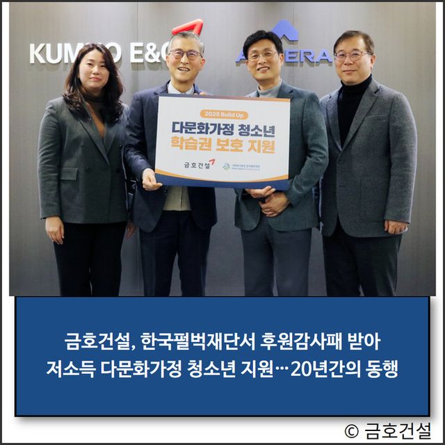 금호건설은 지난 2004년부터 저소득 다문화가정 청소년 지원 활동을 시작해, 20년 동안 지속적으로 이어오며, 지역사회에 나눔과 희망의 메시지를 전달해왔다.