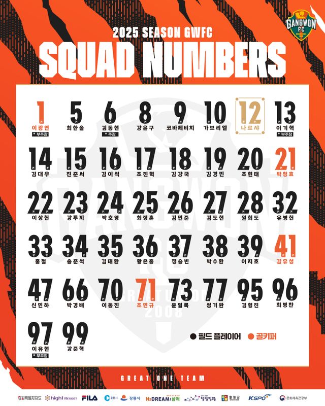 프로축구 K리그1 강원FC가 2025시즌 선수단 등번호를 21일 공개했다.