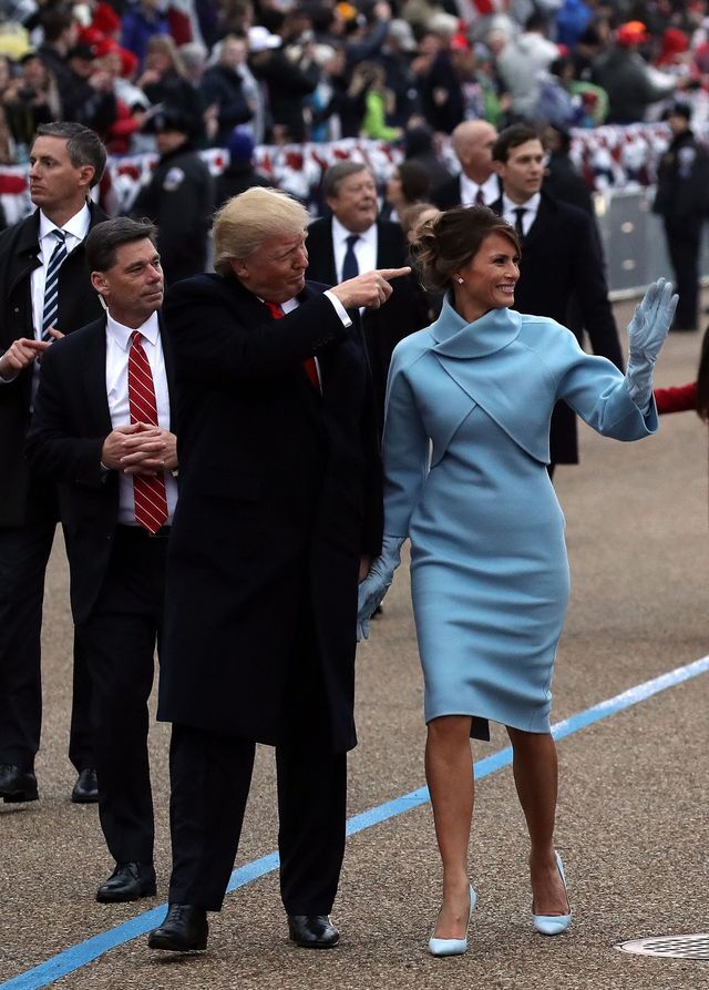 첫 취임식 때는 어떤 룩을 입었을까? 2017년 트럼프 대통령의 첫 취임식에서는 ‘아메리칸 드림’을 상징하는 미국 대표 브랜드 랄프 로렌의 하늘색 원피스를 입었다. 당시 외신은 멜라니아 여사가 ‘애국주의’와 ‘글로벌리즘’을 동시에 암시하는 의상을 입었다는 평을 냈다.