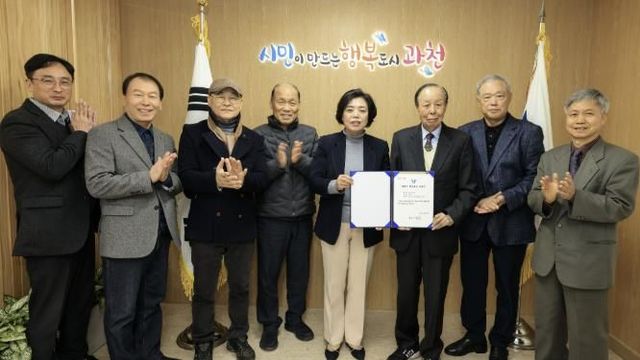 지난 20일 시청 시장 집무실에서 열린 지정서 전달식에는 신계용 과천시장과 봉화 정씨 양경공파 종회 정택수 회장 등 관계자가 참석했다.