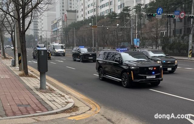 대통령 경호처가 21일 12시40분경 경기도 의왕시 캐딜락 에스컬레이드를 이용해 헌법재판소로 향하고 있다.