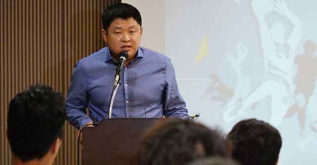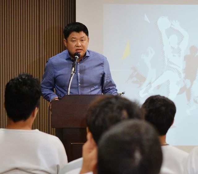 강동희가 2016년 8월 28일 서울 강남구 리베라호텔에서 프로야구 kt 선수단을 대상으로 '나 같은 길을 걷지 말라'라며 부정방지교육을 하고 있다. 당시 말이 무색하게도 다시 불미스러운 일에 휘말렸다. / 뉴스1 자료사진