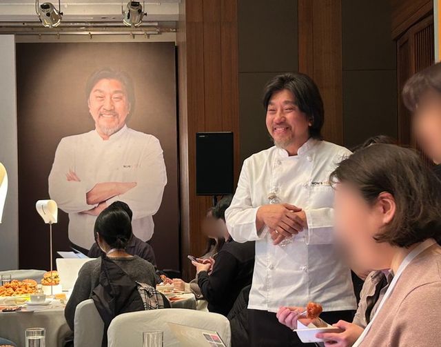 에드워드 리 셰프가 기자들과 만나 맘스터치 신메뉴 레시피에 관해 설명하고 있다. =배예진 기자
