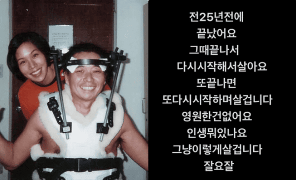 강원래는 21일 자신의 소셜미디어(SNS)에 "전 25년 전에 끝났어요. 그때 끝나서 다시 시작해서 살아요"라고 적었다.