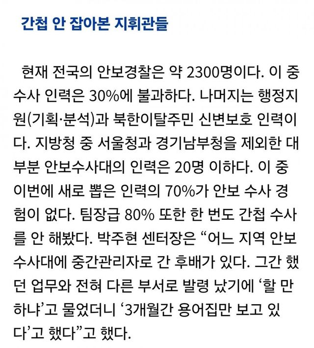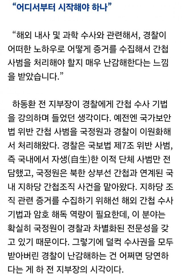 원래 국정원과 경찰은 간첩 수사를 이원화 해서 서로 잘 하는 것에 집중했음