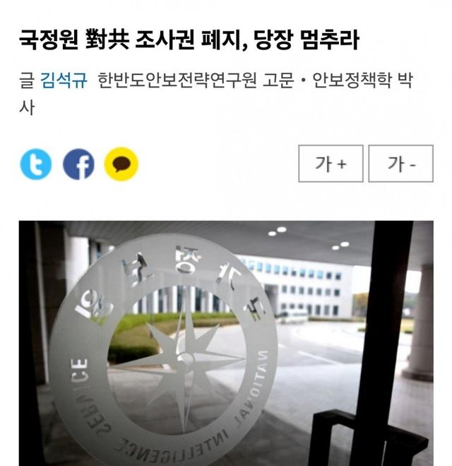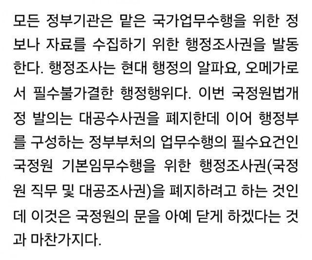이제 조사권까지 폐지 당하면 국정원은 사실상 문을 닫는 것과 마찬가지임.
