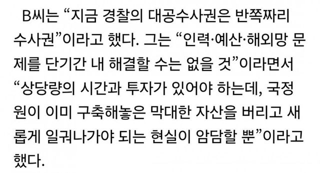 그런데 전 국정원 대구지부장이 전하는 말에 따르면, 경찰은 국정원이 하는 것까지 도맡아 해야 하는 상황에 내부적으로 난감해 하고 있다고 함