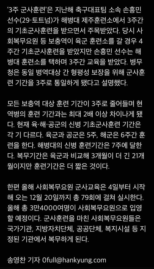 3. 병무청 오피셜 보충역 기초군사훈련 4주에서 3주로 25% 단축 ㄷㄷ