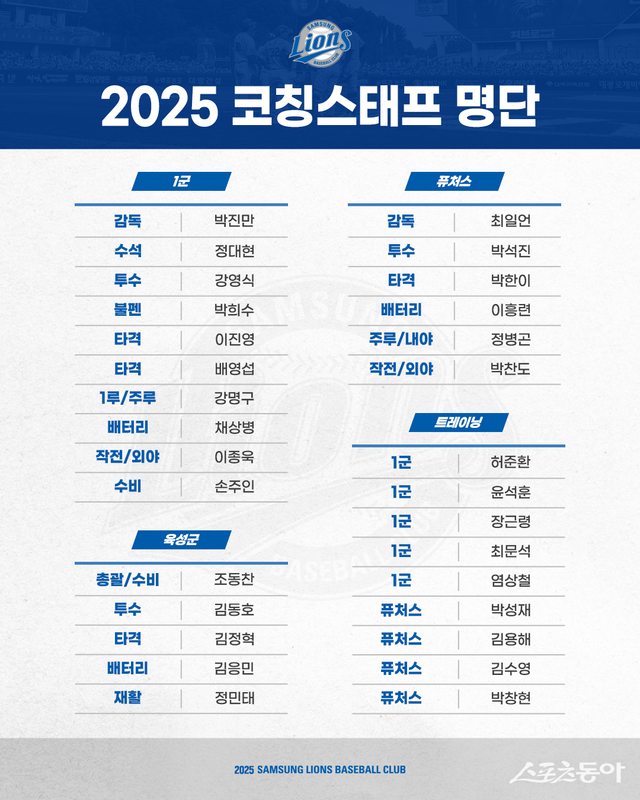 삼성 라이온즈는 21일 2025시즌 코칭스태프 보직을 확정, 발표했다.