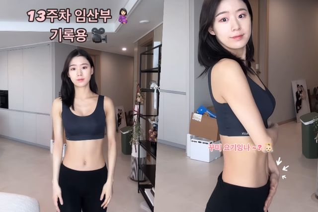 공개된 영상 속 윤혜수는 브라톱에 레깅스를 입은 채 임신 13주차 복부를 드러낸 모습이다. 무용가답게 슬림한 몸매를 자랑한 윤혜수는 "이제는 확실히 누우면 아랫배, 치골 사이 쪽이 볼룩 계란+오렌지만 한 크기가 톡 튀어나와 있어"라고 전해 눈길을 끌었다.