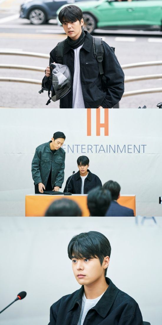 이런 가운데 공개된 사진 속에는 기자회견장에 선 유진우의 모습이 담겨 있다. 수많은 기자와 소속사 관계자의 시선이 유진우에게 집중되어 있지만 위기에 몰린 유진우를 지켜줄 사람은 아무도 없어 안타까움을 더한다.