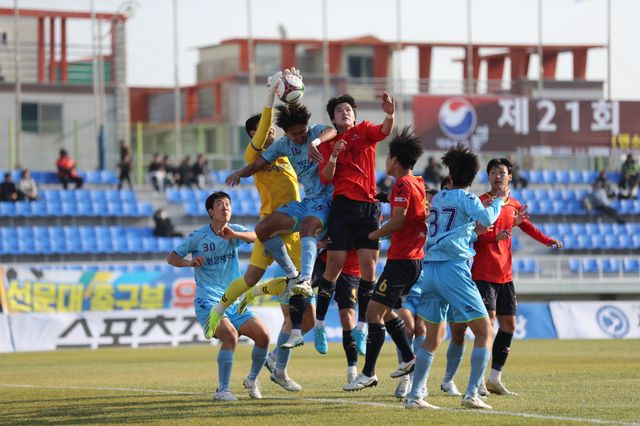 후반부터 전주기전대가 전방 숫자를 늘렸다. 거듭 측면을 공략한 전주기전대는 후반 23분 김이삭이 올린 크로스를 김민구가 머리로 받아 넣으며 균형을 맞췄다.