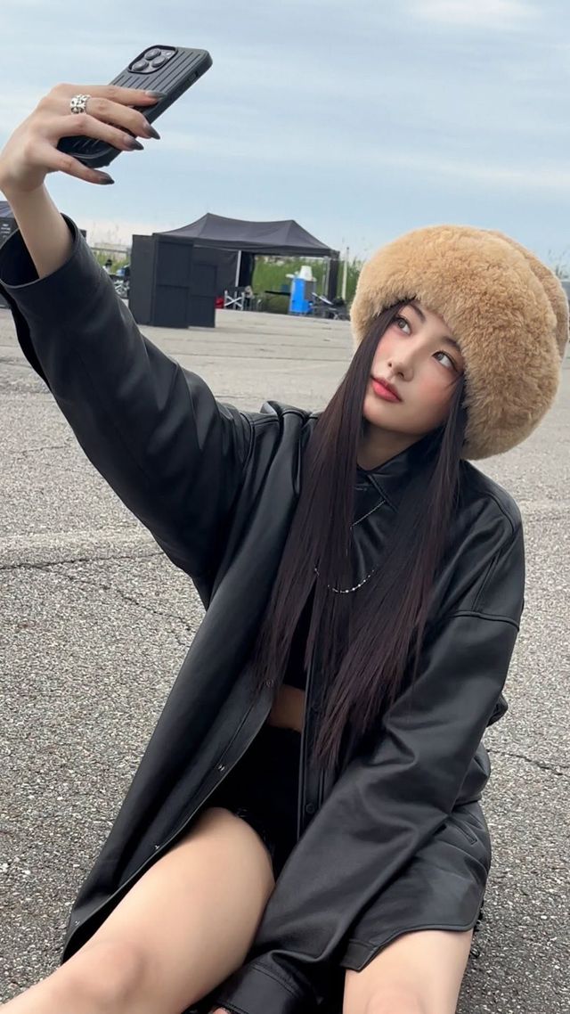 누구보다 핫한 나린의 피팅룸 셀카는 또 어떻고요. 레오퍼드 패턴이 가미된 퍼 햇을 오프숄더 미니드레스, 어글리 스니커즈와 매치한 그의 모습은 금요일 밤 파티 룩으로도 손색없습니다.