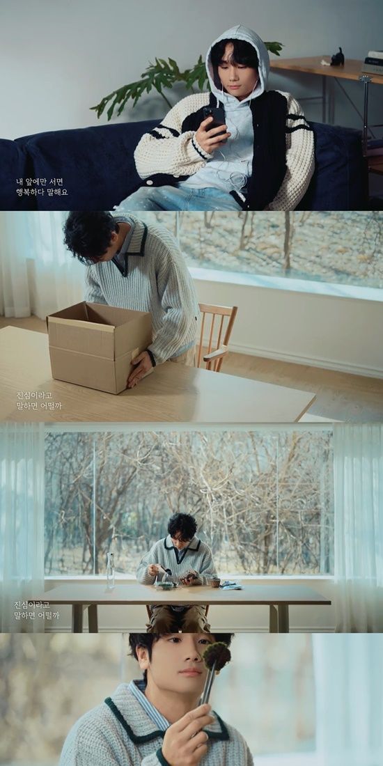 함께 공개된 뮤직비디오는 이번 곡이 가진 서정적이고 차분한 무드를 잘 담아냈다. 영상 속 남자가 쓸쓸한 분위기 속에서 혼자만의 시간을 갖는 모습, 여기에 '사랑한다고 말하면 어떨까 / 단 한 번만 용기를 낸다면 / 내 맘 같지 않게 / 오늘도 내 맘속에서라도 말하면 어떨까'라는 노랫말이 흐르면서 리스너들의 몰입감을 고조시킨다.
