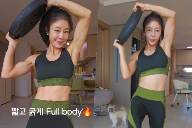 공개된 영상 속 이지현은 브라톱에 레깅스 운동복을 맞춰 입고 홈 트레이닝을 하고 있는 모습이다. 묵직한 덤벨을 들고 있는 이지현은 선명한 복근과 팔 근육으로 감탄을 자아냈다. 이어진 영상에는 덤벨을 활용한 다양한 운동 방법을 직접 선보이며 운동 전도사다운 매력을 더했다.