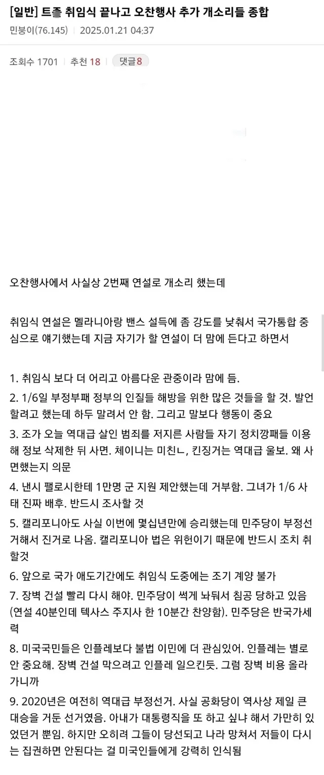 트럼프 취임식 끝나고 오찬행사 추가 개소리들 종합