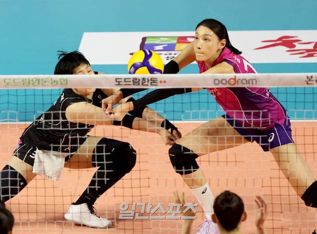 하지만 점수 차는 좁혀지지 않았다. 18-22에서는 혼전 상황에서 네트를 넘어온 공을 김다은이 밀어 넣었지만, 그대로 사이드라인을 벗어나며 아웃됐다. 5점 차로 벌어진 순간이었다. 흥국생명은 18-24에서 김다은의 오픈 공격이 황민경에게 블로킹 당하며 결국 2세트를 내줬다.