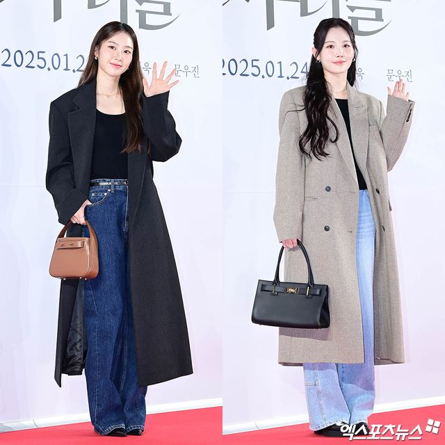 이날 VIP시사회에 참석한 오마이걸 출신 지호와 걸스데이 유라가 포토타임을 갖고 있다.