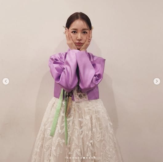 공개된 사진 속 윤은혜는 보라색 저고리와 흰색 치마를 차려입고 우아한 자태를 뽐내고 있다. 특히 드라마 '궁'에서 신채경 역을 맡았던 당시를 연상케 하는 포즈와 표정은 많은 이들의 향수를 자극했다.