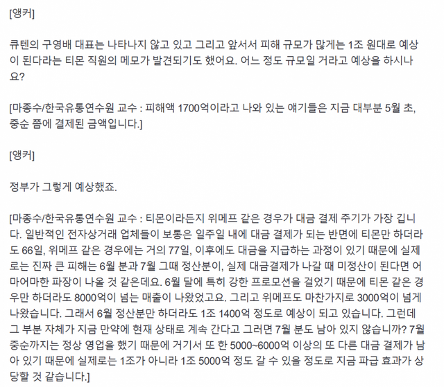 3. 5월말 6월 7월 결제액 다 반영하면 피해규모 1조5000억으로 예상 ㄷㄷㄷ