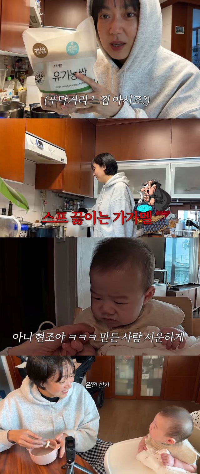 (엑스포츠뉴스 김수아 기자) 코미디언 강재준, 이은형 부부가 아들의 첫 이유식에 도전했다.