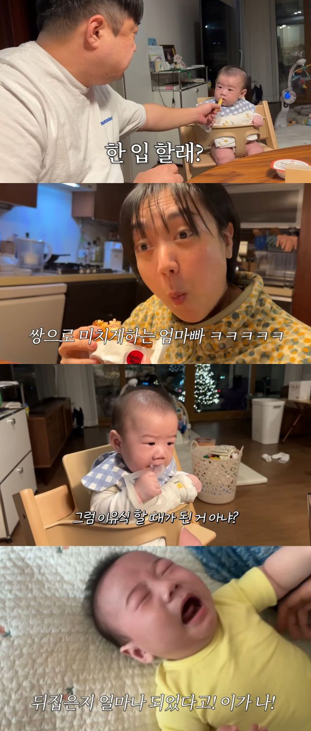 이에 강재준은 "그럼 이유식 할 때가 된 거 아니냐"고 말을 이으면서 숟가락으로 이유식을 대비해 훈련했다. 이은형은 "요즘에 숟가락으로 먹는 연습을 하고 있다"고 설명을 덧붙였다.