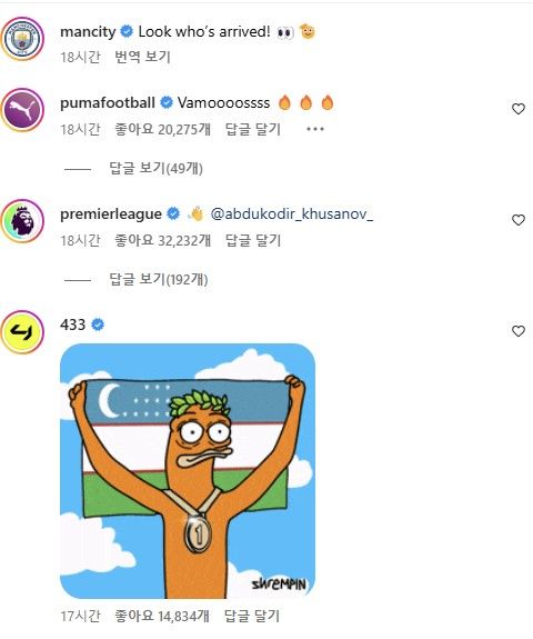 (엑스포츠뉴스 용환주 기자) 맨체스터 시티(맨시티) SNS가 우즈베키스탄 축구팬들의 성지로 변했다.