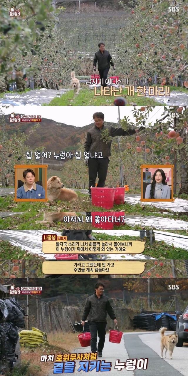 어디선가 나타나 사과밭 주인 아저씨만 쫓아다니는 강아지