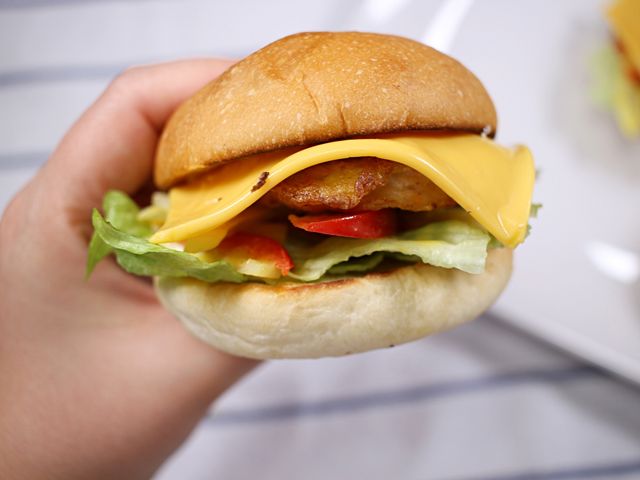 작지만 동그랑땡 패티부터 야채, 치즈까지
