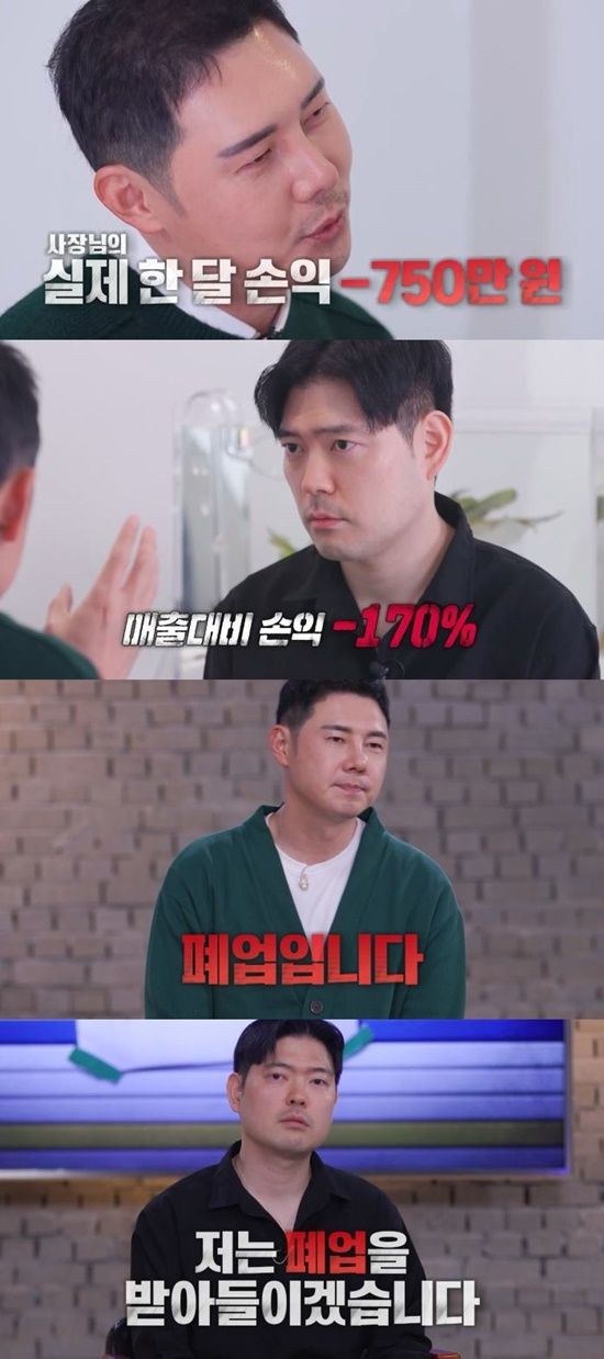 뼈아픈 현실을 마주한 사장은 "2년 동안 결과를 못 냈기에, (폐업) 결정을 받아들이겠다"고 말했다. 유정수는 "용기 있는 선택을 하셨다. 오늘의 결심이 내일의 돌파구가 될 수 있길 바란다"고 응원했다.