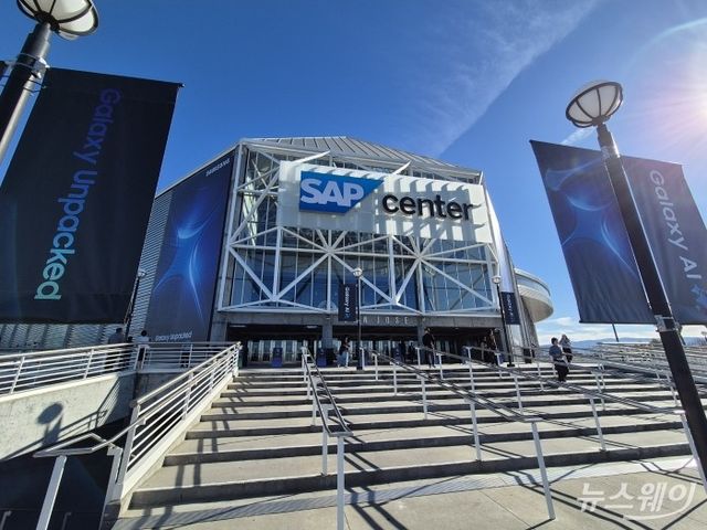 갤럭시 언팩을 하루 앞둔 가운데 행사가 개최되는 SAP센터에는 막바지 행사 준비가 이어졌다. 사진=김현호 기자