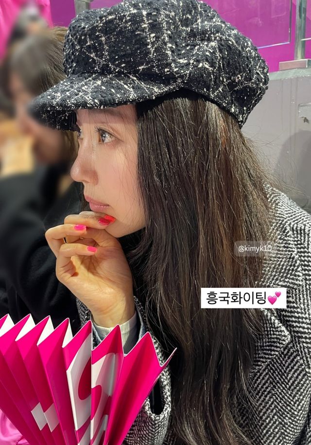 21일 김사랑은 자신의 인스타그램에 김연경의 이름을 태그하며 "흥국 화이팅"이라는 글과 함께 집중해서 경기를 보고 있는 자신의 모습을 담은 사진을 공개했다.
