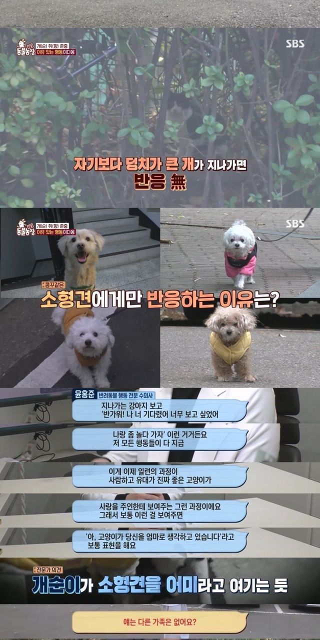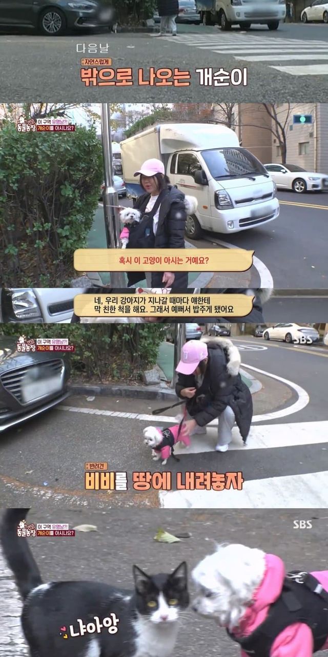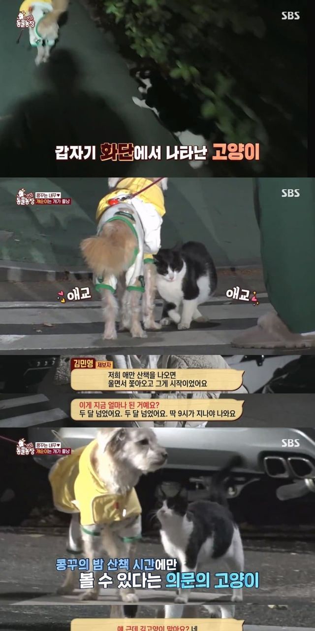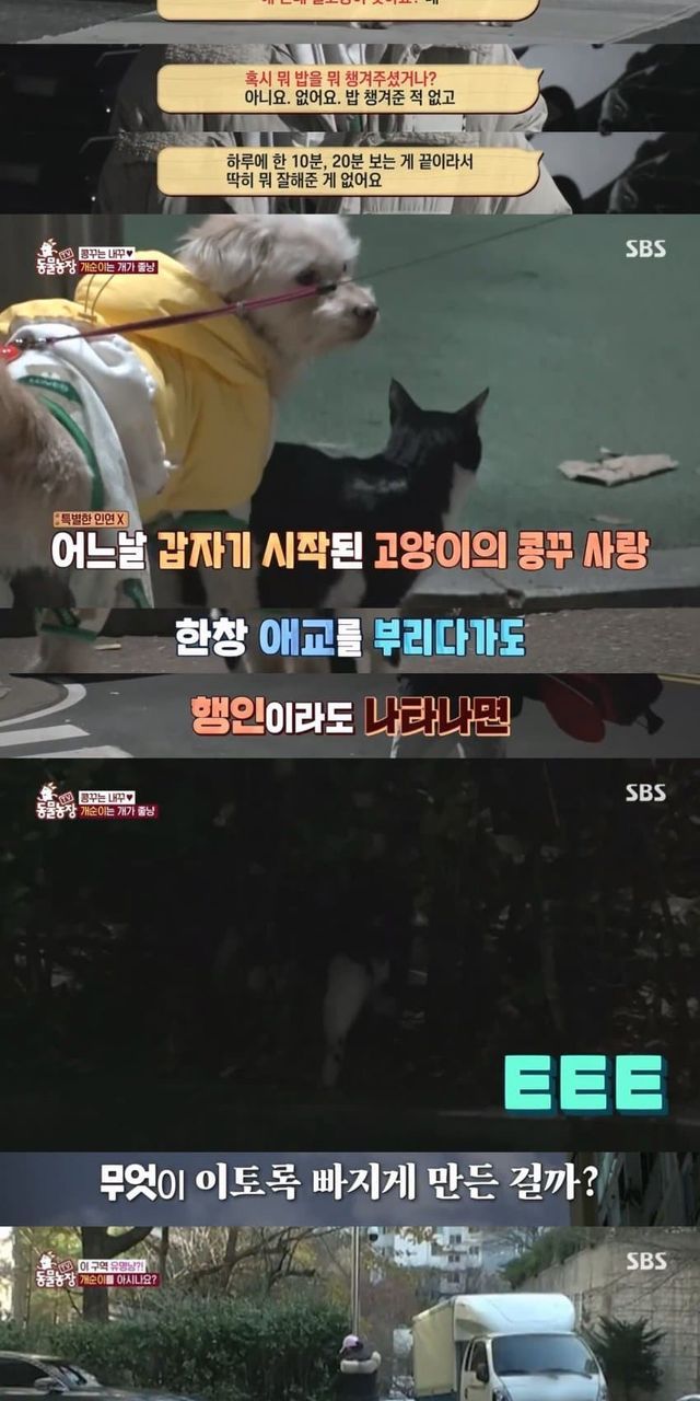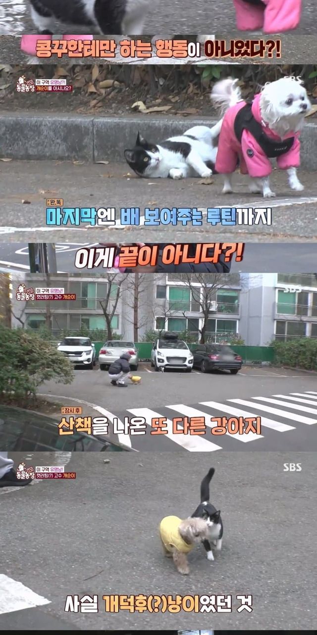 산책길에 나타나는 소형견만 좋아하는 고양이
