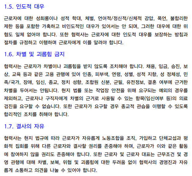 게다가 '공급망 실사' 원리가 글로벌 트렌드로 자리잡히고, 머지않아 한국 역시 ESG 보고서 작성·공개의 법적 의무화 역시 확실시된다. 그렇다면 국제규범으로 인정된 인권과 환경 지침을 이행하기 위해 공급망 우두머리라 할 수 있는 원청 기업들이 협력사들 인사·경영에 영향을 미치는 것은 어찌보면 자연스런 일이다.