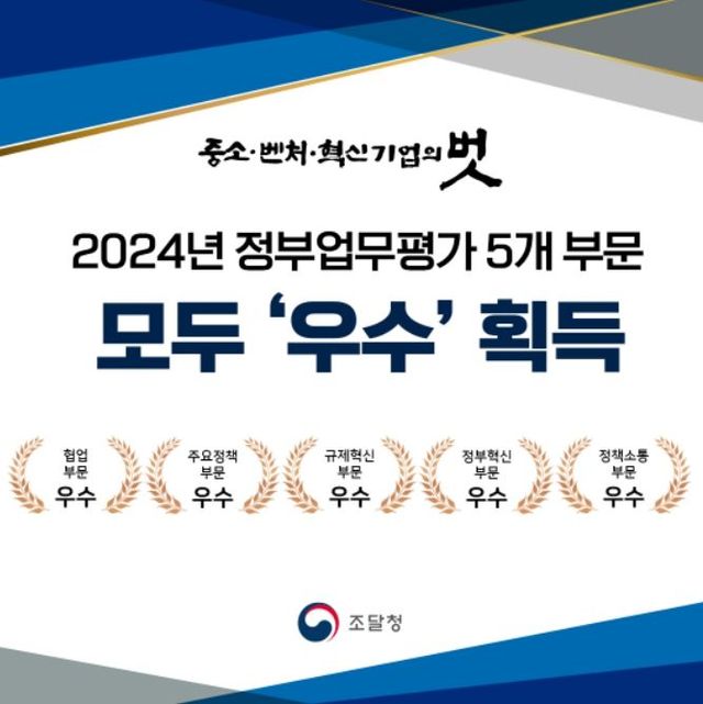 조달청은 46개 중앙행정기관 대상으로 주요정책, 협업, 규제혁신, 정부혁신, 정책소통 등을 평가하는 국무조정실 주관 2024년 정부업무평가에서 전 부문 우수기관으로 선정됐다.